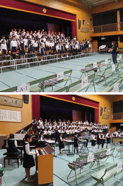 2グループに分けて練習していますが、どちらのグループも、合唱や合奏は子どもたちの気持ちがこもったものでした。