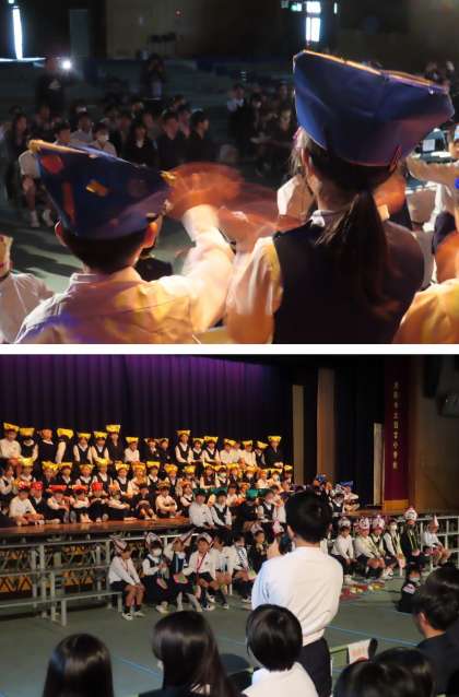 2年生が、本番で使う手作り帽子をかぶって熱演していました。