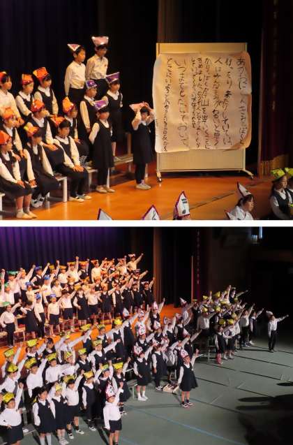 2年生は『ないた赤おに 青おにをさがそう!〜オリジナル日吉っ子バージョン〜』です。