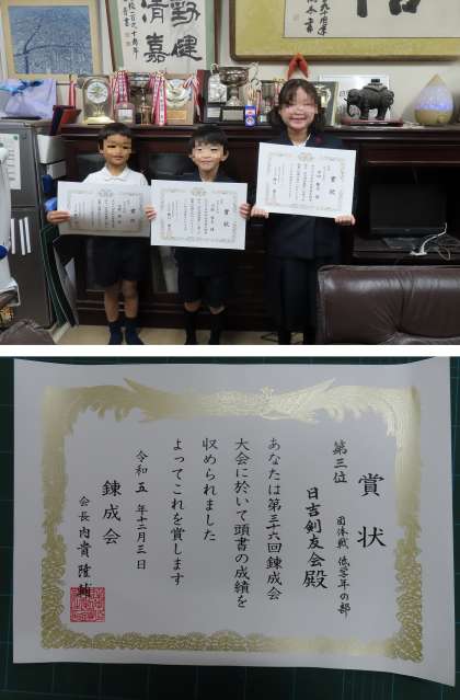 ・日吉剣友会が、錬成会大会の低学年団体戦で3位になった表彰