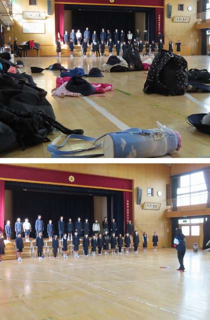 今日は、日吉小の合唱団・合唱クラブが『にし人権展』で発表します。