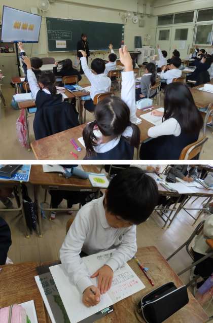 子どもたちは、一生懸命に自分の考えを、隣のお友だちやクラス全員に説明していました。