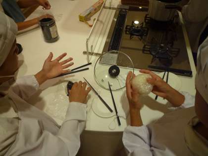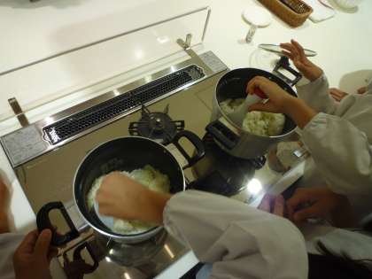 最終日となるこの日は、みそ汁も作るクッキングを予定していましたが、お米そのものの美味しさを味わうために、お鍋で炊いた白米のみを食べました。炊き立てのお米を食べて、「おいしい!おいしい!」との感嘆の声が口々にあがったそうです。