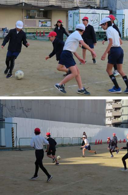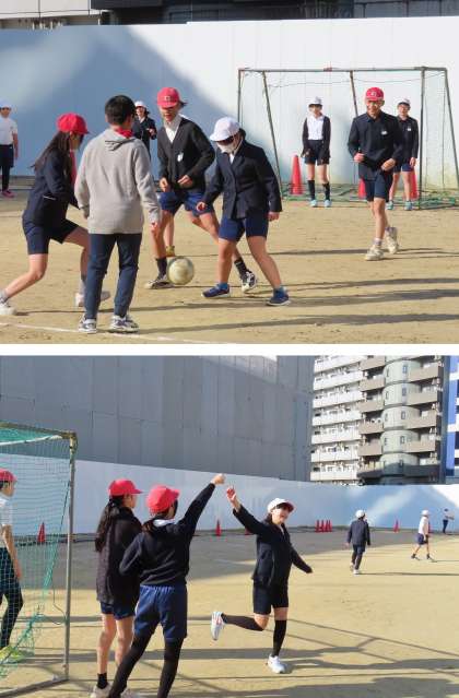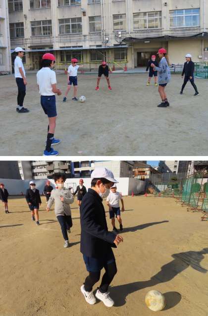 まずは、グループに分かれてパスをするなどの練習をしました。