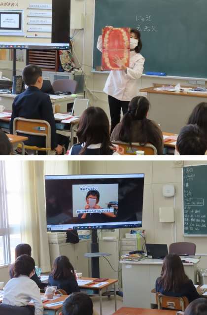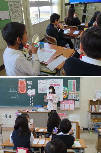 今日は、歯科衛生士さんに来ていただき、2年生に『歯みがき指導』をしていただきました。