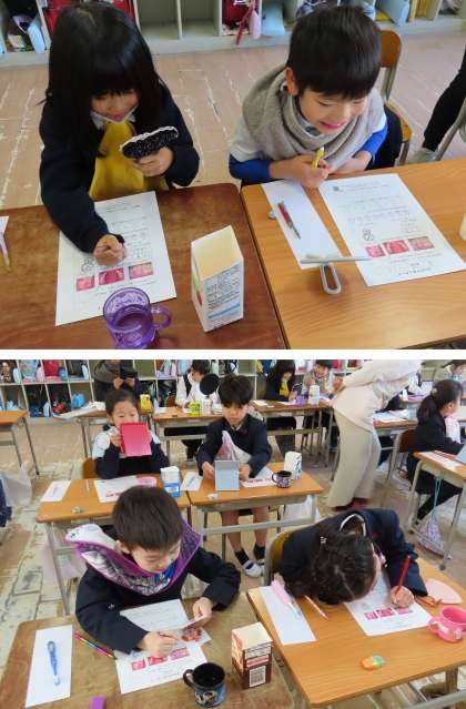 赤く染めてみたり、歯ブラシの持ち方を工夫したりして、歯みがきの仕方を教わっていました。