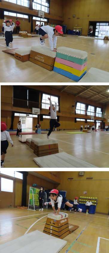 跳び箱を使った運動遊びを、サーキットトレーニングのように回りながらしていきました。