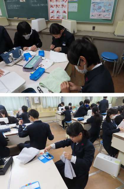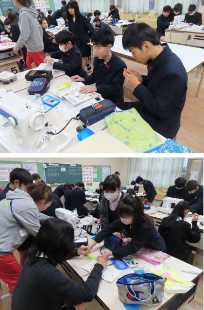 今6年生は、「卒業をお祝いする会」で、在校生にプレゼントする『ぞうきん』を作っています。