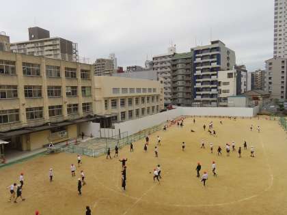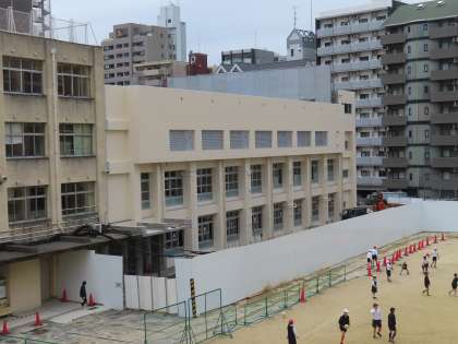 今週になり、新校舎を覆っていたシートや金属パイプがはがされ、新校舎の全景を見ることができました。