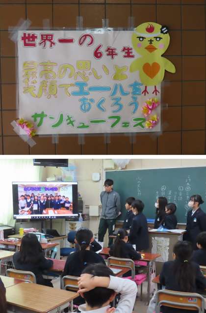 明日は、6年生の卒業をお祝いする『サンキューフェス』を3・4時間目に行います。