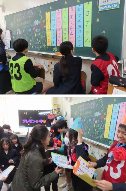 まずは“卒業じゃんけん”をして盛り上がり、そのあとは、みんなで作った手作りのプレゼントを渡しました。