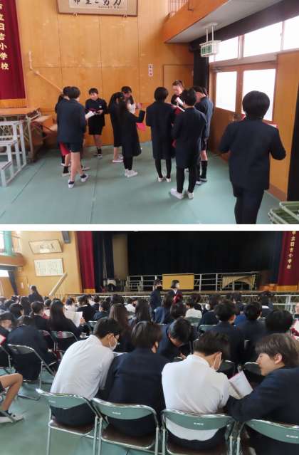 今日から6年生も、講堂での卒業式の練習を始めました。