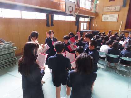 今日は、パイプいすの座席を確認したあと、呼びかけの順番を決めていました。