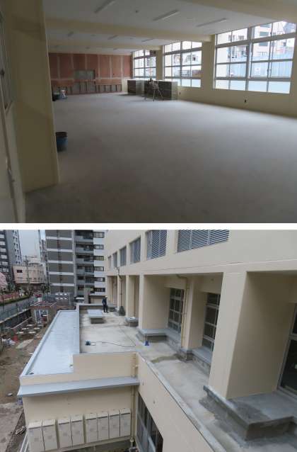 2階部分は、音楽室兼多目的室。教室は外に出れるようになっていましたので、何らかの対策が必要です。