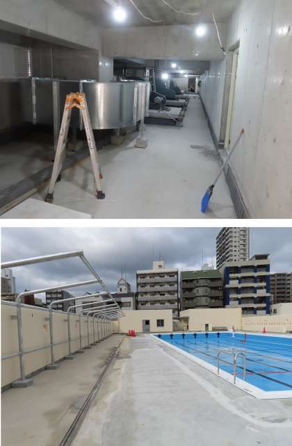 3階部分はプールの機械室となり、4階(屋上)が新しいプールとなります。