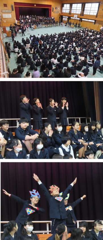 『ひよしレンジャー』が入学式以来の登場で、会場を盛り上げてくれました。