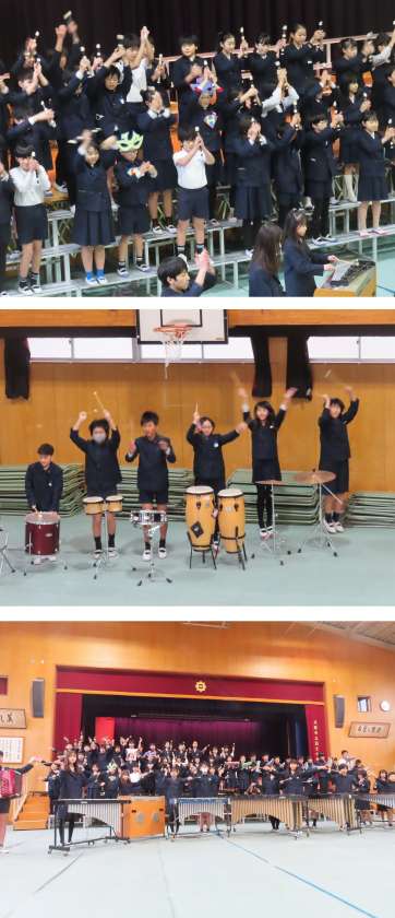 全員が講堂には集まれないので、今日と明日の2回に分け、1〜5年生も半分が講堂に入り、6年生の2クラスが演奏をしました。