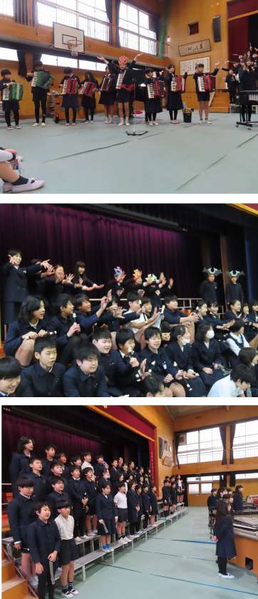 前日行った『サンキューフェス』(卒業をお祝いする会)のお礼にと、6年生が音楽集会を開いてくれました。