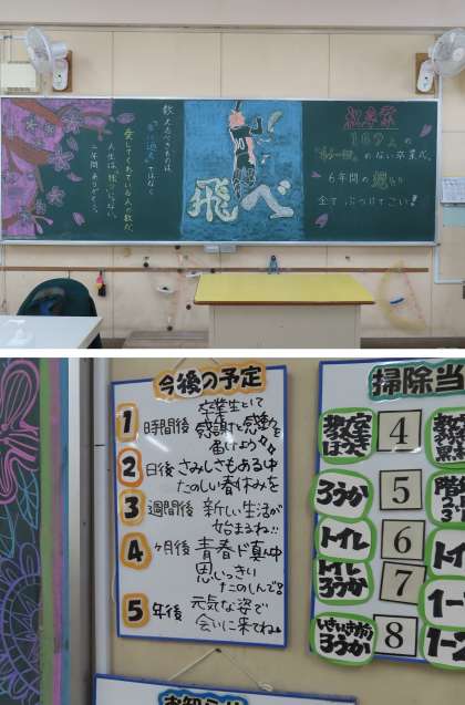 各クラスの黒板掲示がとても素晴らしかったので、記念に写真で残しておきます。