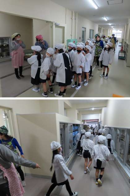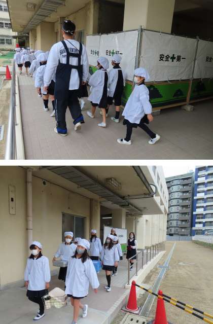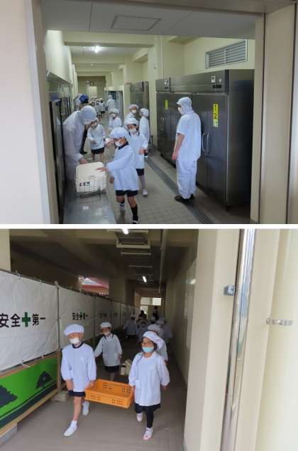 工事がまだ完了していないので、少し動線が違いますが、当分はこのルートで給食を運んだり返したりします。