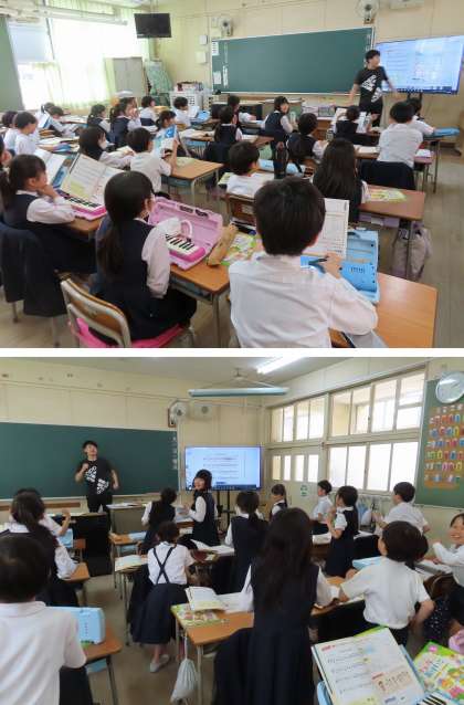 3年生が音楽の時間に『ア ラム サム サム』という曲に合わせて踊っていました。