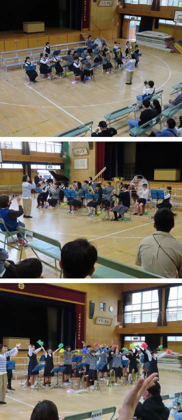 ブラスバンドクラブの演奏から始まり、日吉合唱団の合奏、そして10時30分からは、堀江中学校吹奏楽部の演奏です。