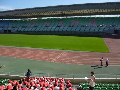 6年生が西区の他校6年生とスポーツを通じて交流を深める目的で、長居陸上競技場へスポーツ交歓会に行きました。