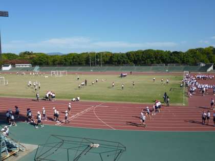 午前は100m走、400mリレーを行い、午後は第2陸上競技場に移動し、サッカーやドッジボールをしました。