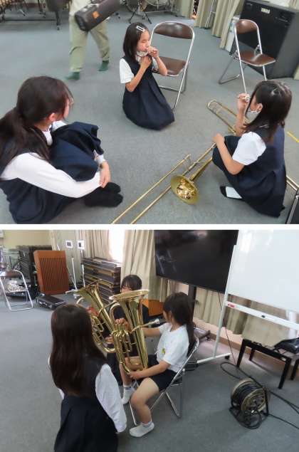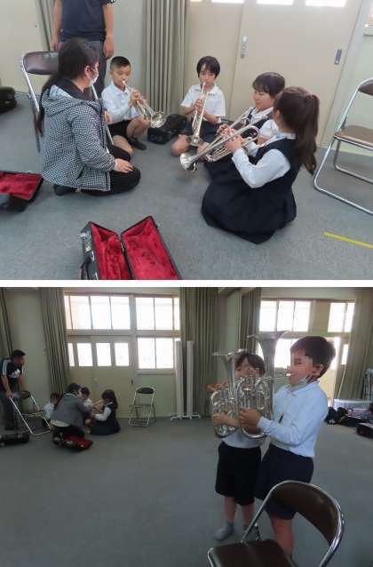 今年ブラスバンドクラブに入る子どもたちが、『楽器の体験会』に参加していました。