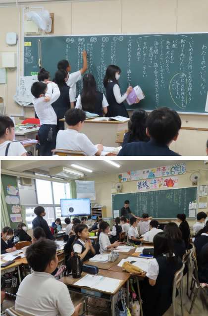 今日は、6年生が道徳の教科書に載っている「わたしのせいじゃない」という教材を使って、『いじめ』について考えていました。