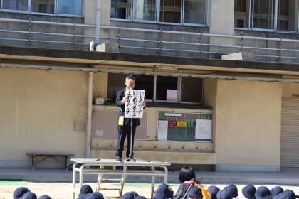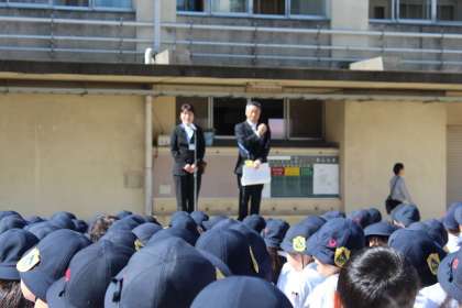 児童朝会「実習生の紹介」と「いじめといのちについて考える日」