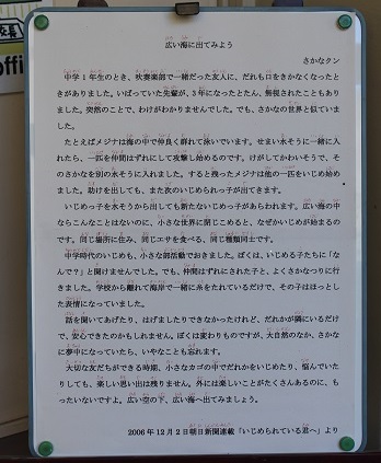 今日は「いじめといのちについて考える日」です。校長先生からはさかなくんの話がありました。一人一人じっくり考える1日になってほしいです。