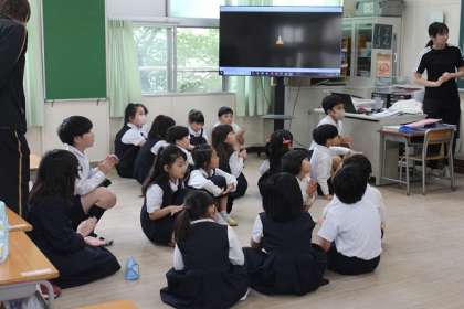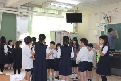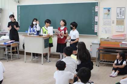 今年初めてのベストフレンド班活動を行いました。初めて1年生から6年生まで、同じチームの仲間と顔合わせをして、ゲームをしました。そのあとは150周年の集会で上げる風船に「日吉小学校のいいところ」を書きました。