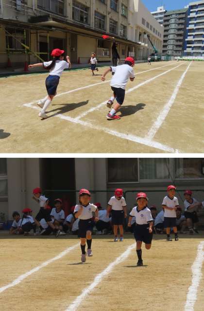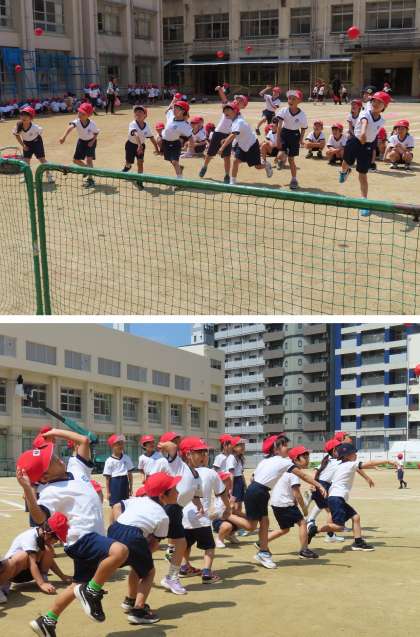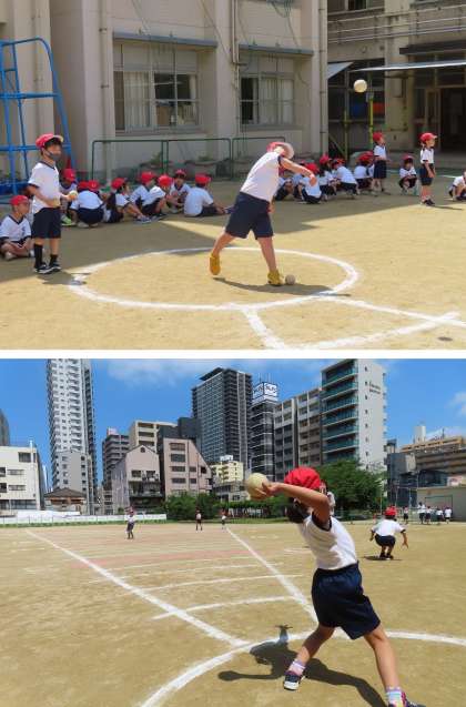 先生の言うことをしっかりと聞き、走ったり投げたりしていました。