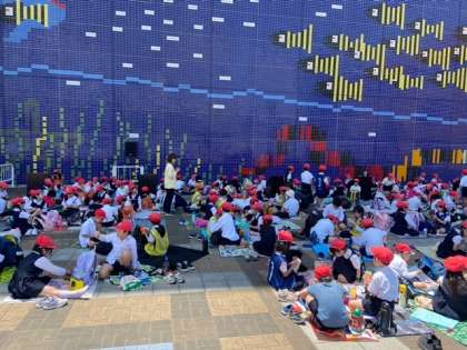 見学も終わって、今からお弁当タイムです。