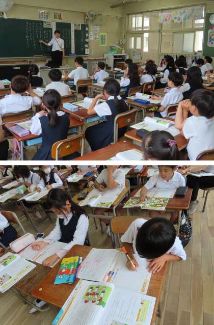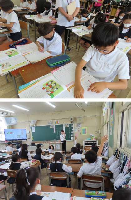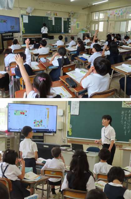 今、日吉小に教育実習に来ている教育実習生の授業です。
