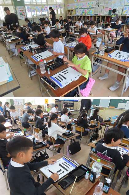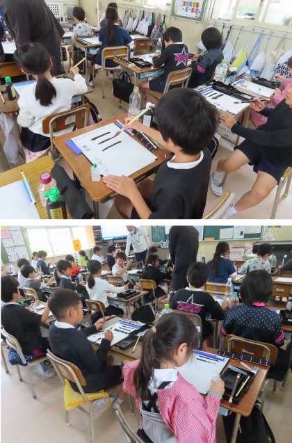 日ごろ、筆や半紙で字を書く習慣はあまりないので、子どもたちは楽しんで習字をしていました。