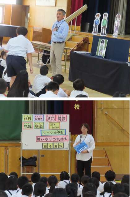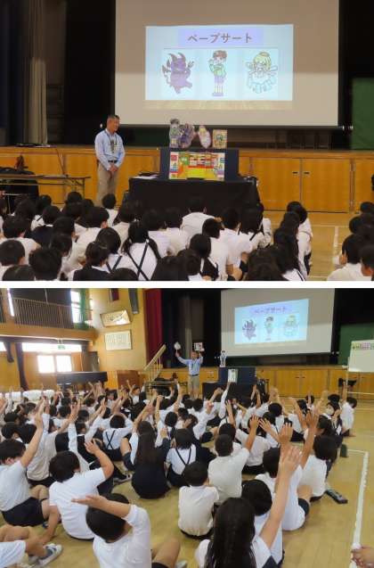 今回は、「『万引き』が非行の入り口」ということで、ペープサートを通して子どもたちにも分かりやすく、万引きがどれだけ悪いことかを教えてもらいました。
