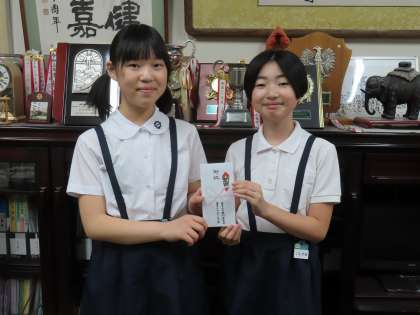 そのお祝いとして、「西区PTA歴代会長会」「西区PTAきさらぎ会」より、金一封をいただきました。