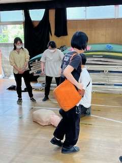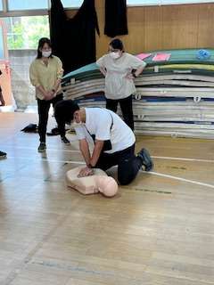 プールの授業を控え、先生方が救急救命講習を行いました。