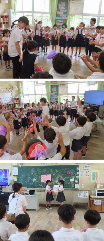 一緒に遊んだり、歌を歌ったり、手作りの花を渡したりと、とても心のこもった温かいお別れ会でした。