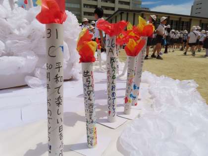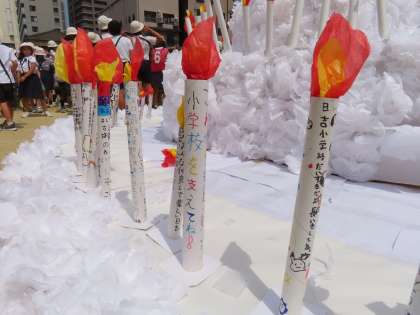 みんなで立てたロウソクには、子どもたちの願いがいっぱい書かれています。
