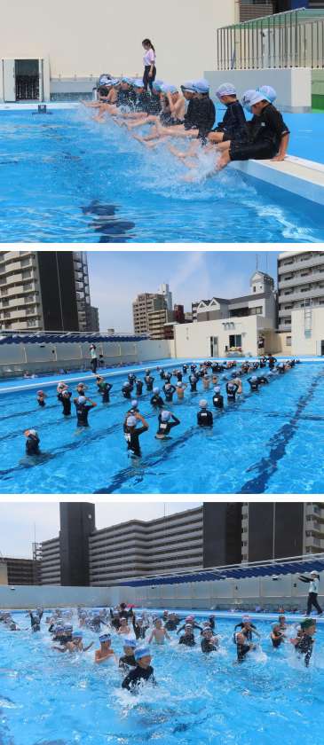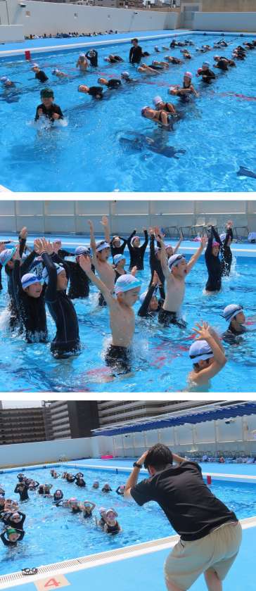 昨年は工事でプールに入れなかったので、1年生と同じく学校でのプールは、今年が初めてです。