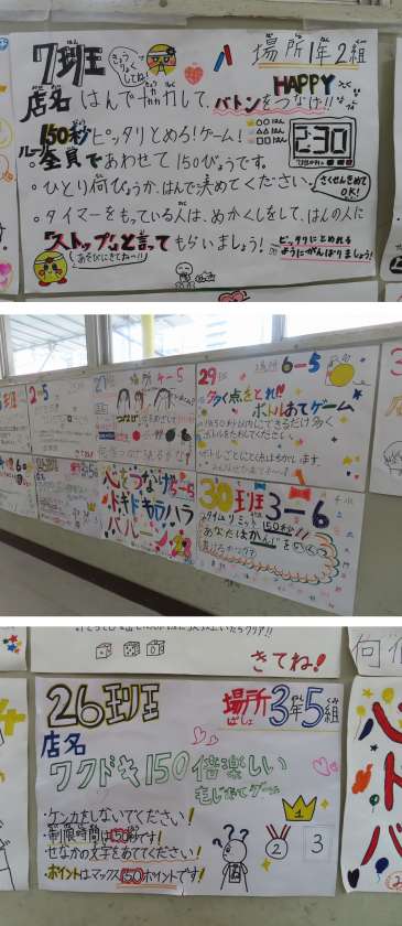 今年は、150周年にちなんで、「粘土150g対決」「150の数字探し」など、150という数字のからんだゲームを、それぞれの班が考えました。