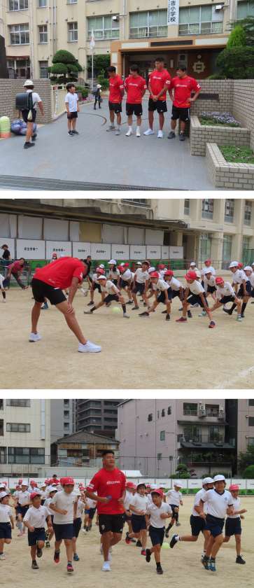 レッドハリケーンズの皆さん、今日は暑い中、子どもたちのために教えに来ていただき、ありがとうございました。