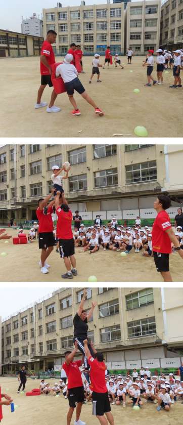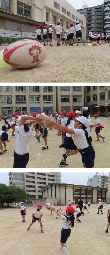 今日は、大阪市のトップアスリート事業で、4年生の子どもたちにラグビーを教えてもらいました。