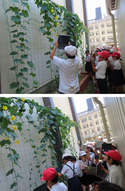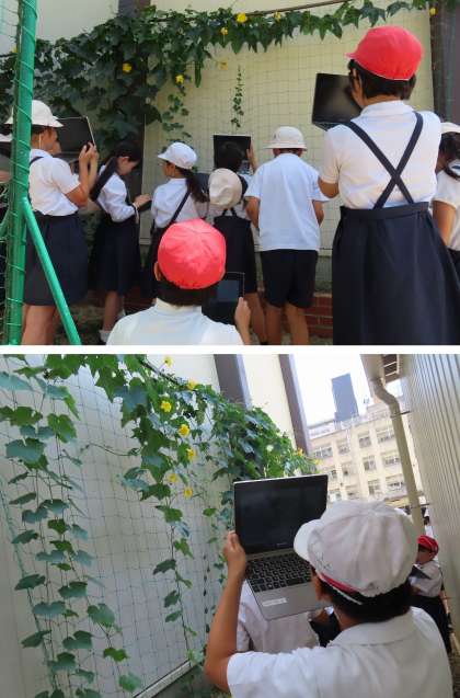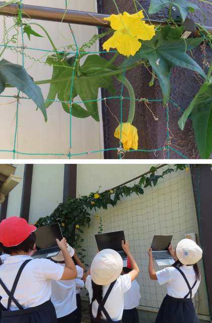 4年生の子どもたちが理科の勉強で、花の様子を撮影していました。