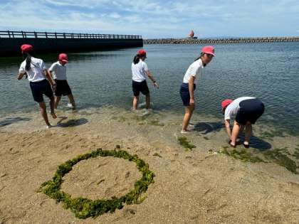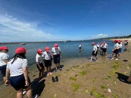 砂浜は遠浅でしたが、海藻がいっぱいでした。