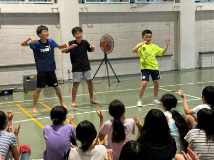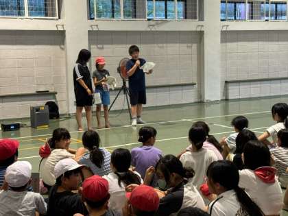 体育館で、夜の集いが始まりました。