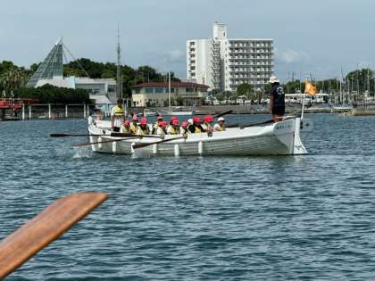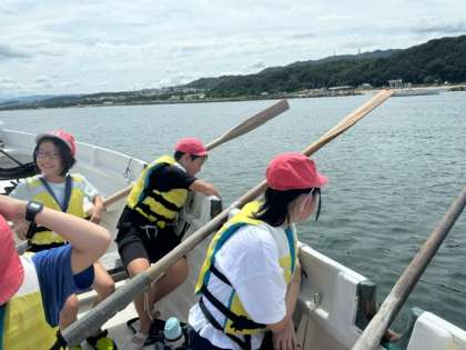 カミナリ注意報が出ていたので、先にカッターを全員乗りました。